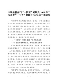 市场监管部门“十四五”时期及2025年工作总暨“十五五”时期及2026年工作规划