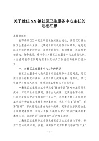 关于就任XX镇社区卫生服务中心主任的思想汇报