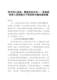 坚守初心使命,锻造优良作风——某高校秋季入党积极分子培训班专题党课讲稿
