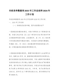 市政务和数据局2025年工作总结和2026年工作计划