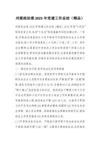 州委政法委2025年党建工作总结(精品)