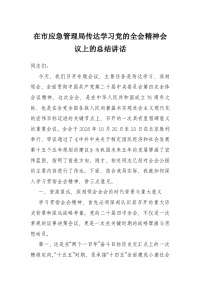 在市应急管理局传达学习党的***精神会议上的总结讲话