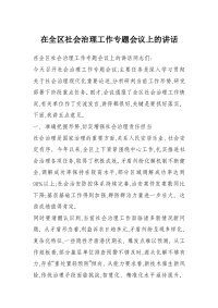 在全区社会治理工作专题会议上的讲话