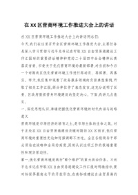 在XX区营商环境工作推进大会上的讲话