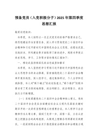 预备党员(入党积极分子)2025年第四季度思想汇报