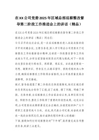 在XX公司党委2025年区域总部巡察整改督导第二阶段工作推进会上的讲话(精品)