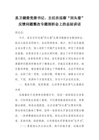 县卫健委党委书记、主任在巡察“回头看”反馈问题整改专题剖析会上的总结讲话