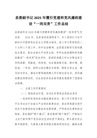 县委副书记2025年履行党建和党风廉政建设“一岗双责”工作总结