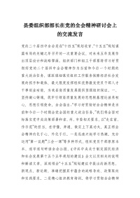 县委组织部部长在党的***精神研讨会上的交流发言