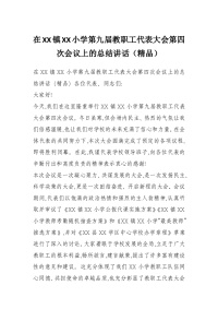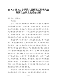 在XX镇XX小学第九届教职工代表大会第四次会议上的总结讲话(精品)