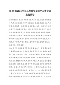 在XX镇2026年元旦节前安全生产工作会议上的讲话