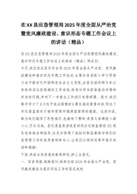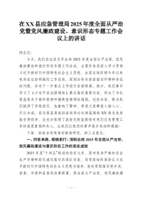 在XX县应急管理局2025年度全面从严治党暨党风廉政建设、意识形态专题工作会议上的讲话(精品)
