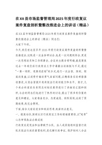 在XX县市场监督管理局2025年度行政复议案件复盘剖析暨整改推进会上的讲话(精品)