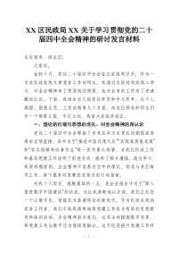 XX区民政局XX关于学习贯彻党的二十届四中***精神的研讨发言材料