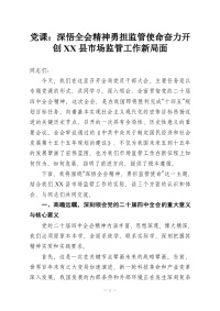 党课:深悟***精神勇担监管使命奋力开创XX县市场监管工作新局面