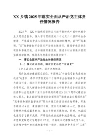 XXX乡镇2025年落实全面从严治党主体责任情况报告
