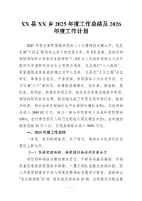 XX县XX乡2025年度工作总结及2026年度工作计划