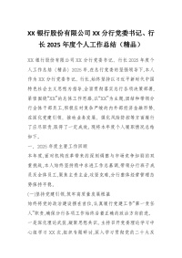 XX银行股份有限公司XX分行党委书记、行长2025年度个人工作总结(精品)