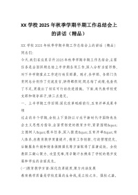 XX学校2025年秋季学期半期工作总结会上的讲话(精品)