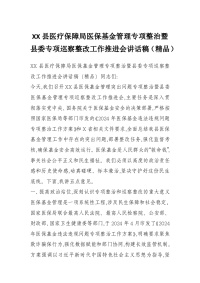 XX县医疗保障局医保基金管理专项整治暨县委专项巡察整改工作推进会讲话稿(精品)