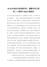 XX市水电设计院党委书记、董事长学习党的二十届四中***心得体会