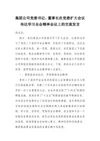 集团公司党委书记、董事长在党委扩大会议传达学习***精神会议上的交流发言