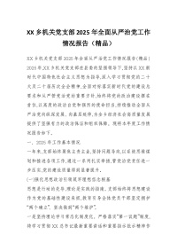 XX乡机关党支部2025年全面从严治党工作情况报告(精品)