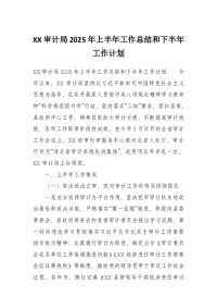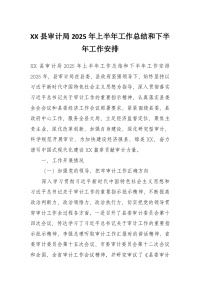 XX县审计局2025年上半年工作总结和 下半年工作计划