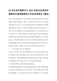 XX市生态环境局关于2025年度企业突发环境事件应急预案管理工作的总结报告(精品)