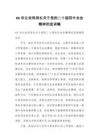 XX市公安局局长关于党的二十届四中***精神的宣讲稿
