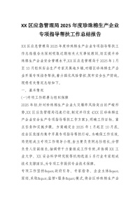 XX区应急管理局2025年度珍珠棉生产企业专项指导帮扶工作总结报告(精品)