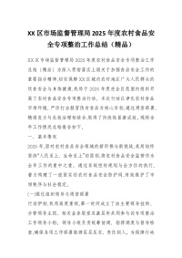 XX区市场监督管理局2025年度农村食品安全专项整治工作总结(精品)