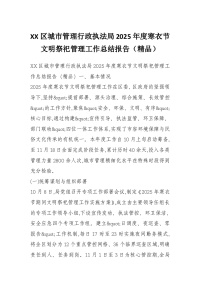 XX区城市管理行政执法局2025年度寒衣节文明祭祀管理工作总结报告(精品)