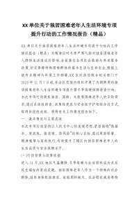 XX单位关于独居困难老年人生活环境专项提升行动的工作情况报告(精品)