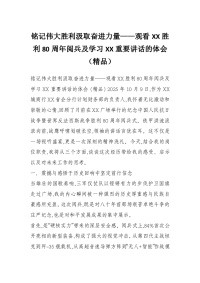 铭记伟大胜利汲取奋进力量——观看XX胜利80周年阅兵及学习XX重要讲话的体会(精品)