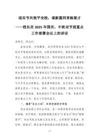 校长在2025年国庆、中秋双节前重点工作部署会议上的讲话:迎双节共筑平安校,谋新篇同育栋梁才