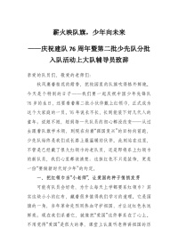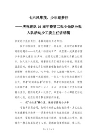 庆祝建队76周年暨第二批少先队分批入队活动少工委主任讲话稿:七六风华茂,少年逐梦行