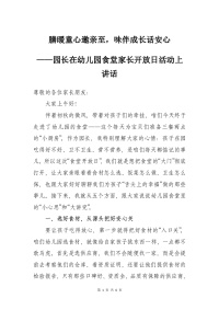 园长在幼儿园食堂家长开放日活动上讲话:膳暖童心邀亲至,味伴成长话安心