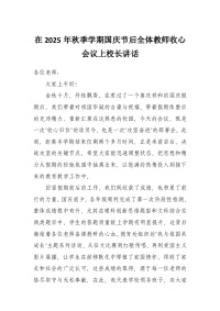 在2025年秋季学期国庆节后全体教师收心会议上校长讲话 1