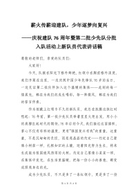 庆祝建队76周年暨第二批少先队分批入队活动上新队员代表讲话稿:薪火传薪迎建队,少年逐梦向复兴