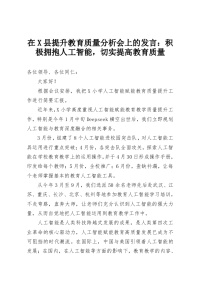 在X县提升教育质量分析会上的发言:积极拥抱人工智能,切实提高教育质量