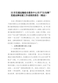 XX市交通运输综合服务中心关于“XX先锋”党建品牌创建工作成效的报告(精品)