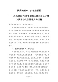 庆祝建队76周年暨第二批少先队分批入队活动大队辅导员讲话稿:队旗映初心,少年赴新程