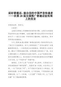 说好普通话,做自信的中国声音传递者——在第28届全国推广普通话宣传周上的发言