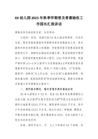 XX幼儿园2025年秋季学期普及普惠验收工作园长汇报讲话