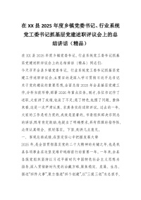在XX县2025年度乡镇党委书记、行业系统党工委书记抓基层党建述职评议会上的总结讲话(精品)