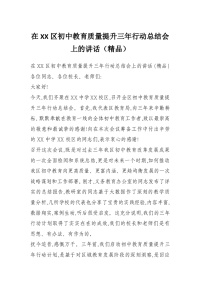 在XX区初中教育质量提升三年行动总结会上的讲话(精品)