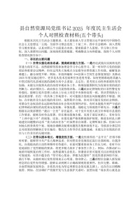 县自然资源局党组书记2025年度民主生活会个人对照检查材料(五个带头)