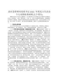 县应急管理局党组书记2025年度民主生活会个人对照检查材料(五个带头)