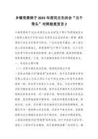 乡镇党委班子2025年度民主生活会“五个带头”对照检查发言2